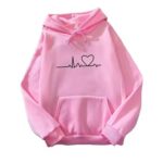 Embrace comfort and style with our trendy unisex white heartbeat hoodie. This chic long-sleeve pullover features a distinctive black ECG line culminating in a heart graphic, perfect for expressing love or adding a unique touch to your outfit. Designed with a generous kangaroo pocket, it offers both warmth and practicality. Crafted for a relaxed fit, it’s an ideal choice for casual wear, streetwear, or as a cozy “couple hoodie” for autumn strolls. Its versatile design makes it a wardrobe essential for anyone seeking a blend of comfort and modern aesthetics. Stay fashionable and connected with this unique heart print pullover.